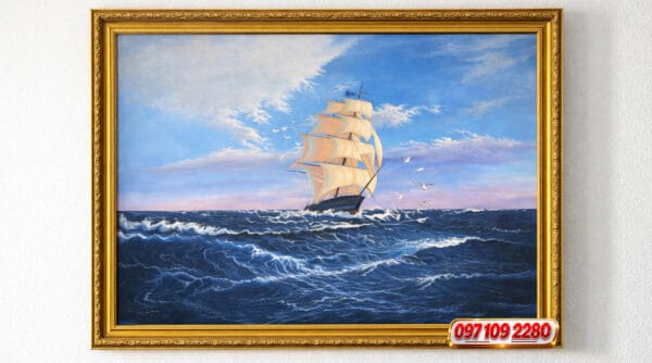 Giữa đại dương bao la, con thuyền no gió lướt sóng tiến về phía chân trời là hình ảnh mạnh mẽ của ý chí, bản lĩnh và khát vọng chinh phục. Tranh Thuận Buồm Xuôi Gió – Vươn Ra Biển Lớn không chỉ là một tác phẩm nghệ thuật, mà còn là biểu tượng cho tinh thần dám nghĩ lớn, dám đi xa và không ngừng bứt phá.
